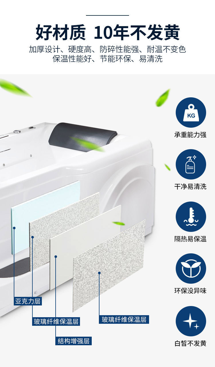 豪华冲浪按摩浴缸家用恒温泡泡浴网红奢华瀑布浴盆1.7米别墅浴池 型号:BA2252