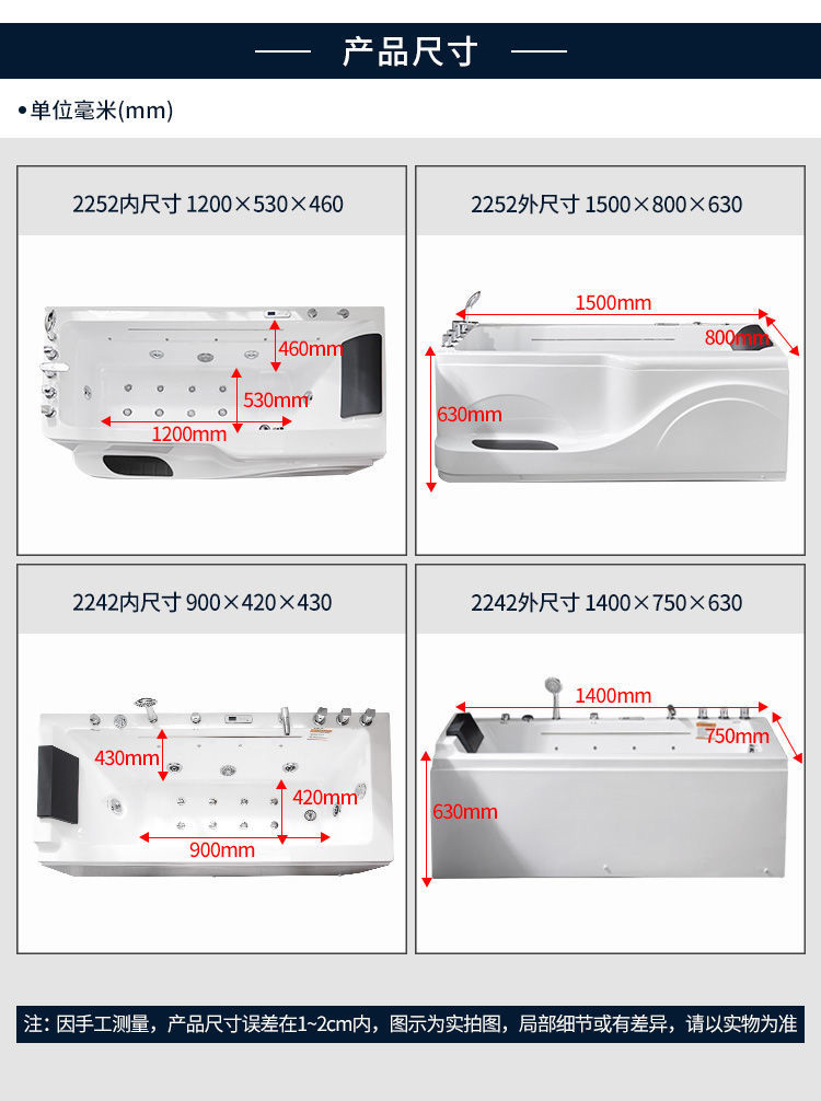 亚克力浴缸 Acrylic Bathtub 型号:BA2252