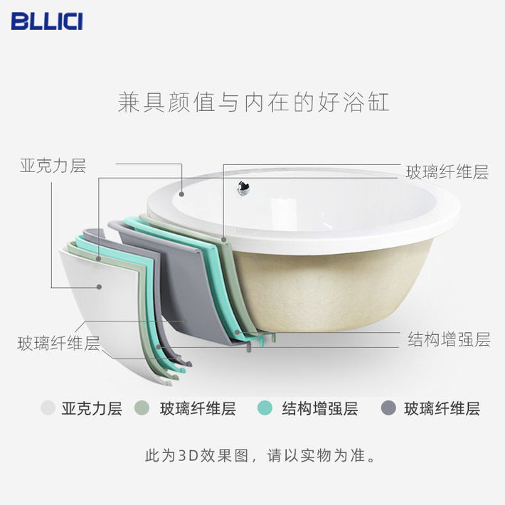 嵌入式圆形浴缸家用成人单人双人欧式按摩浴池1-2米小户型卫生间 型号:BA2203
